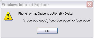 Number and the Phone Number. If the data is in conflict with the predefined data format, you will get a message, alerting you of the correct format for the data.