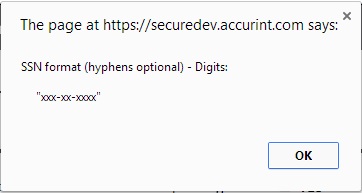 Note: Off this list the system validates the format of only the Social Security Number. If the data is in conflict with the predefined data format, you will get a message, alerting you of the correct format for the data.